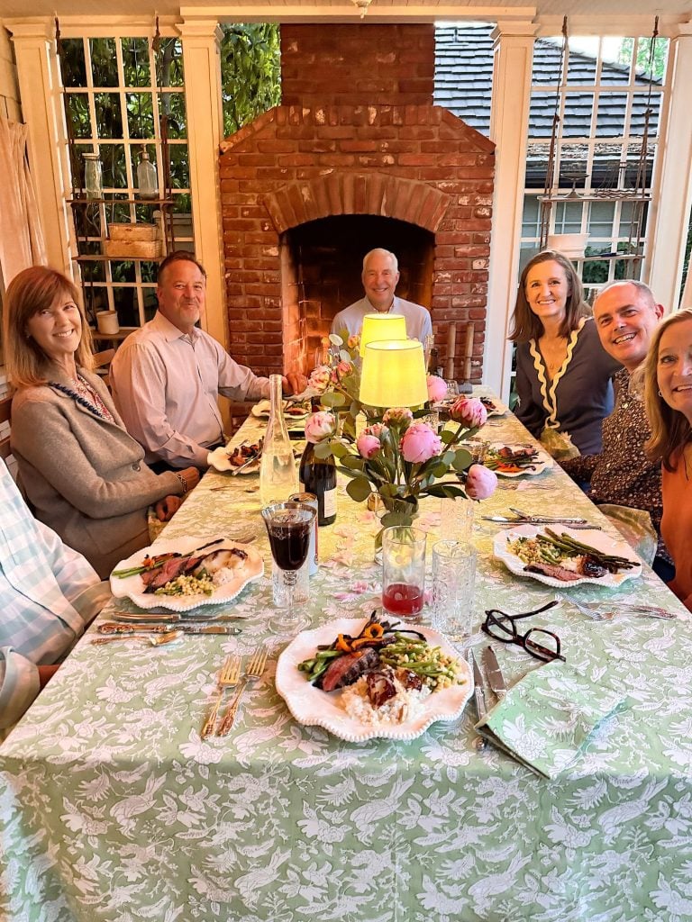 Entertaining outdoors is the best. But let’s be honest, even in June, evenings can still get a little chilly. That’s why I set the table under our covered back porch, where our heaters and fireplace ensured everyone was comfortable and relaxed.