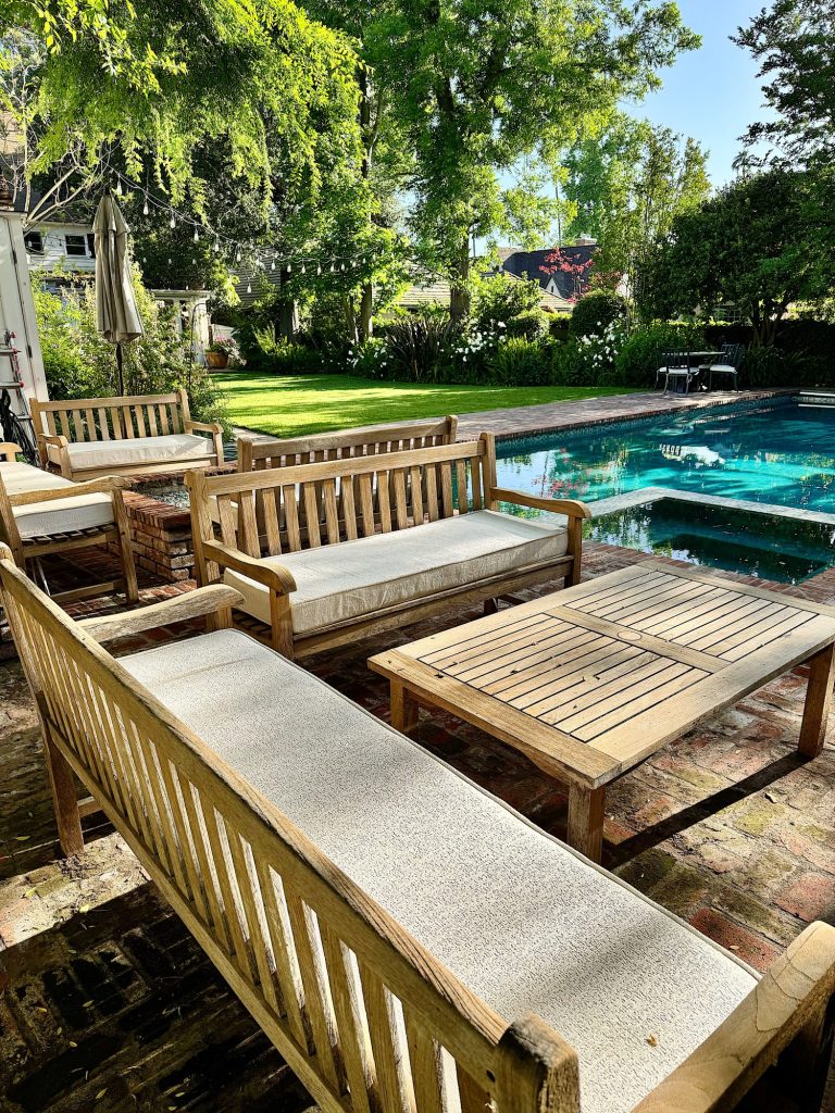 In preparation for their visit, I spent the past few months preparing our home for spring and a full house. I power-washed the front and back patios and all of our 20-year-old teak furniture, which looks brand new now!