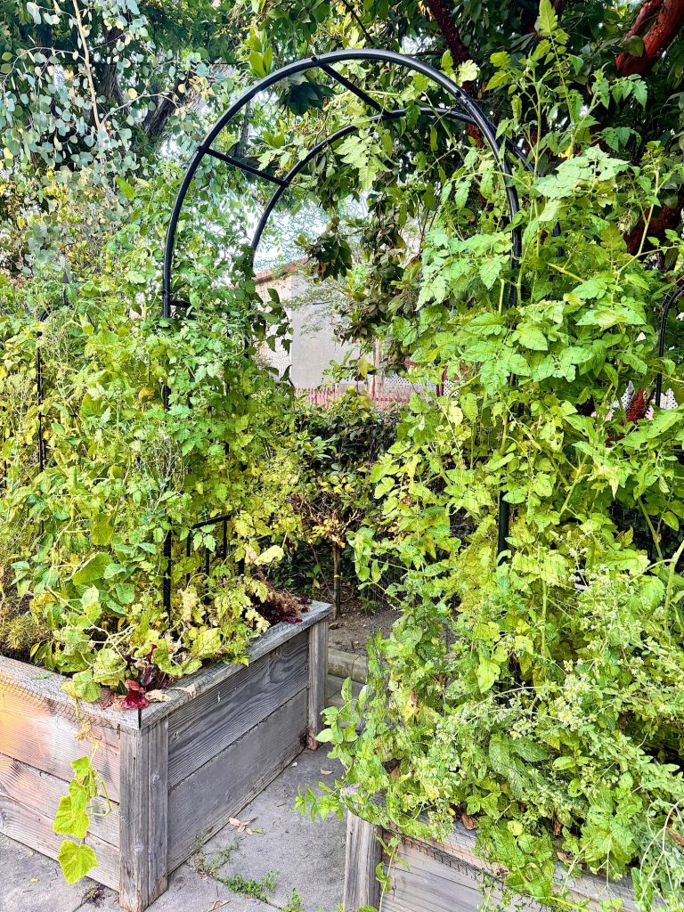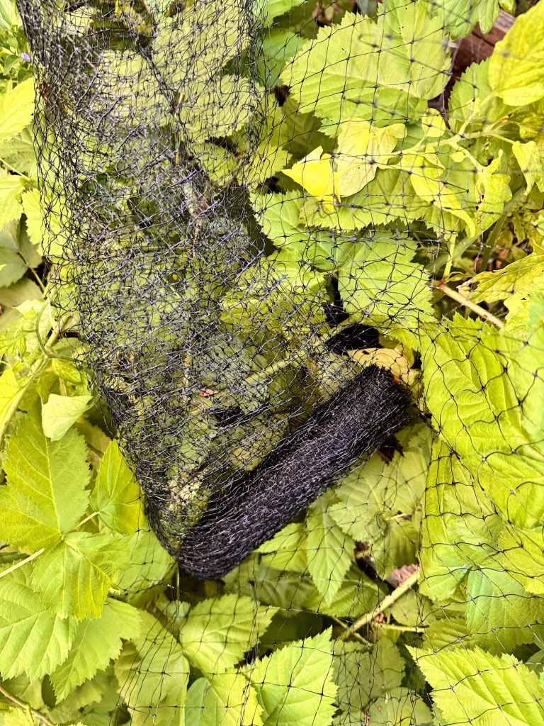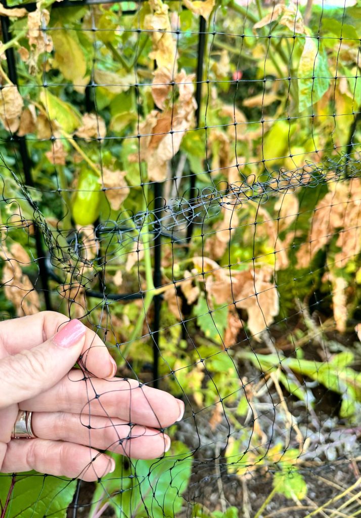 I bought some netting on Amazon and tented all four of my raised garden beds. I really like this black netting because it offers good protection, but it’s not visible. So your garden still looks great.
