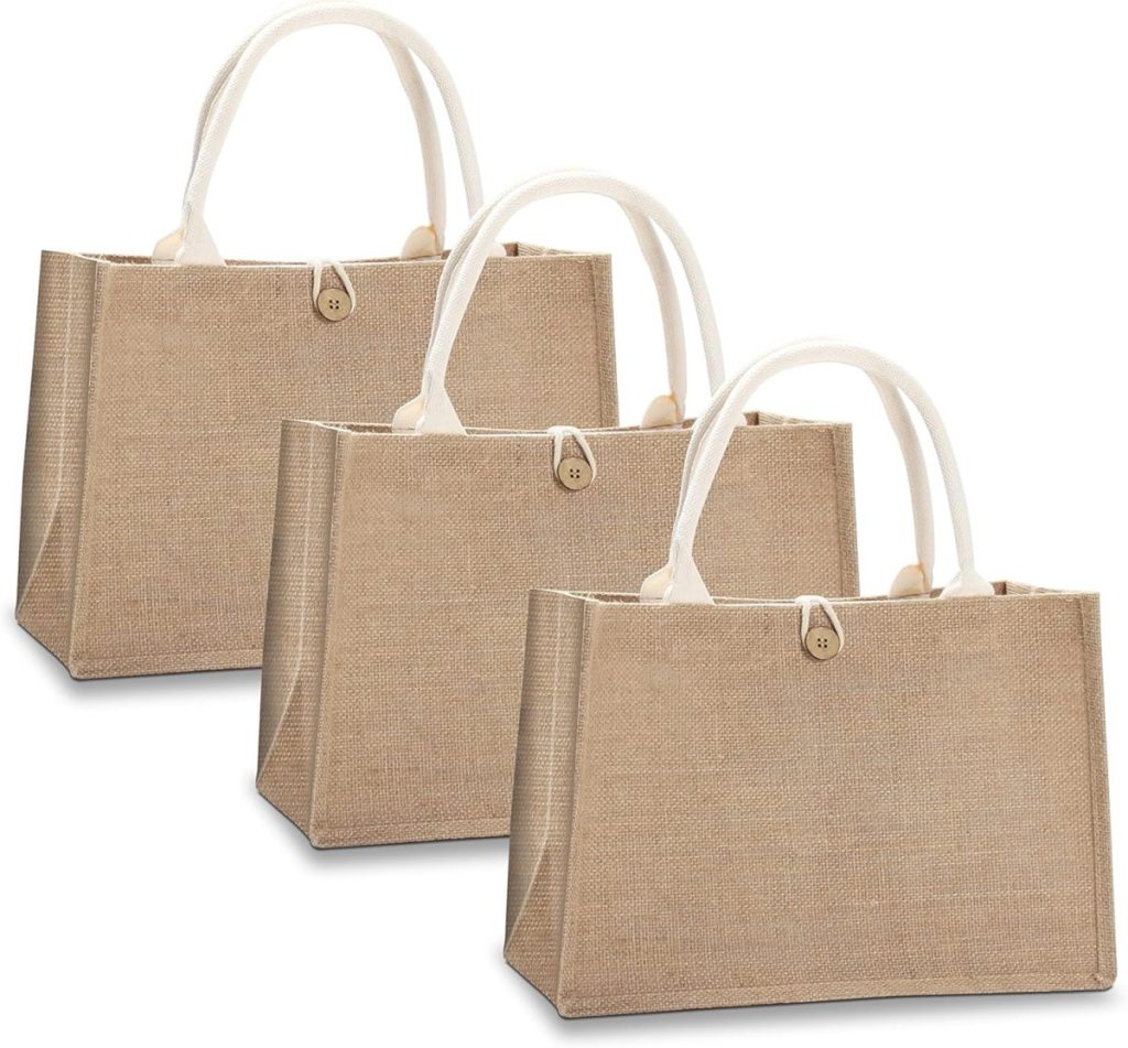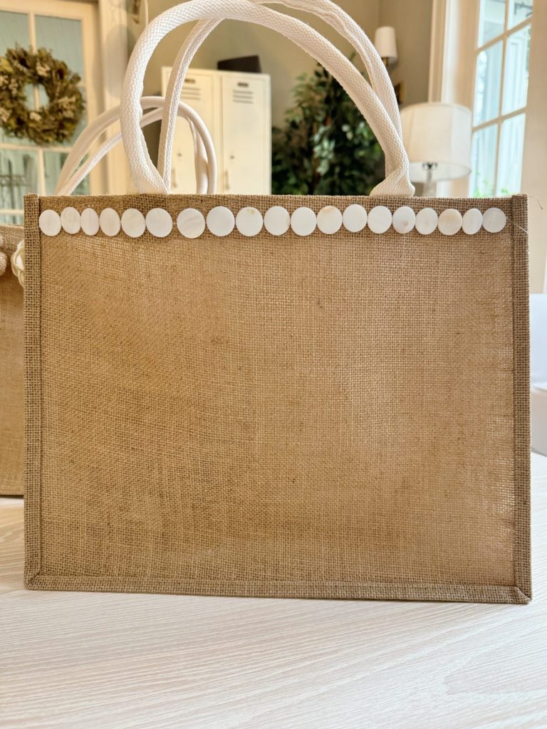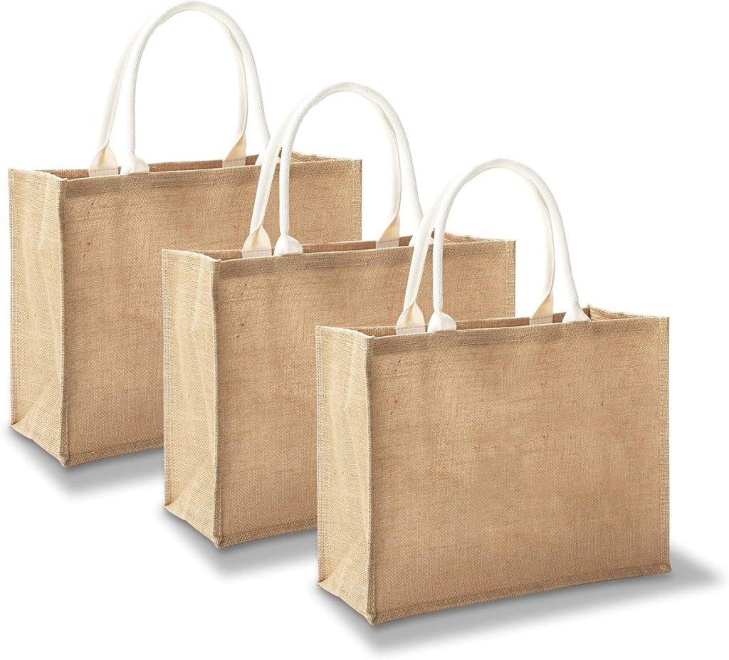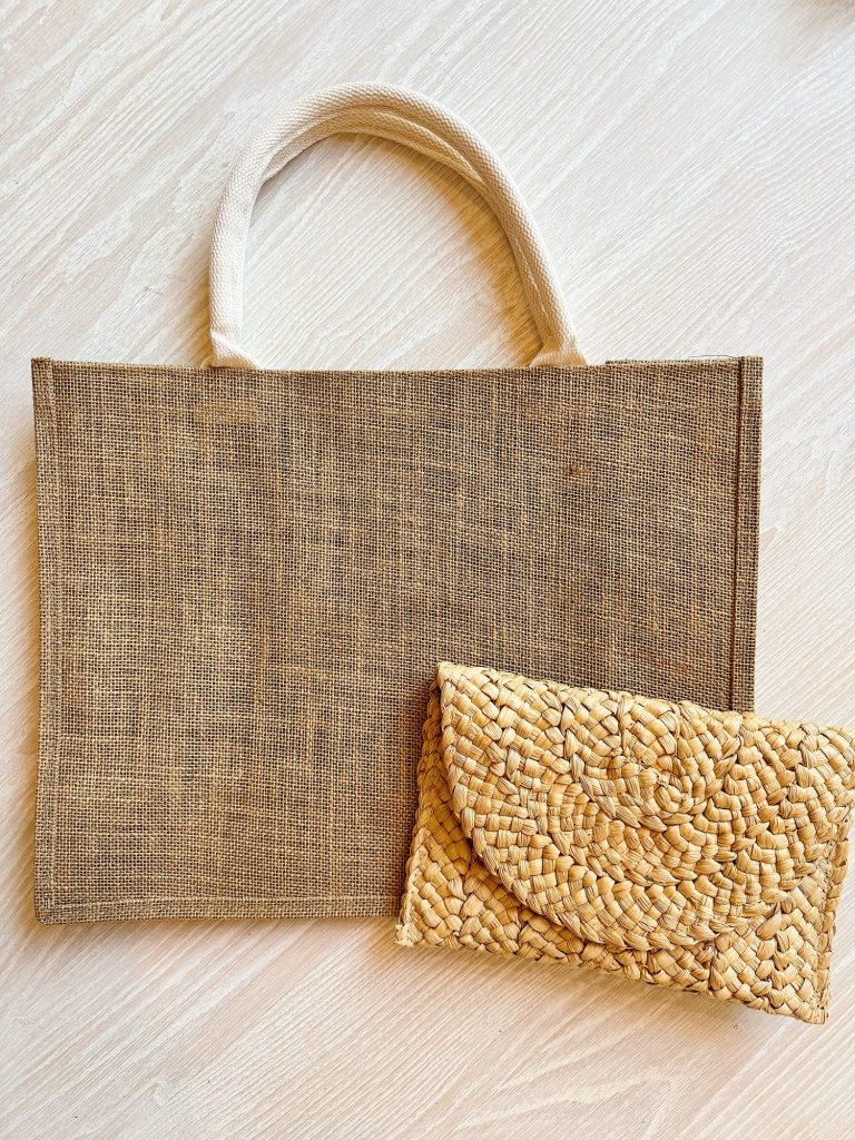 The starting point for this project was finding the perfect blank canvas. I wanted something neutral, spacious, and stylish enough to customize easily. After browsing, I decided on three large burlap tote bags with classic white handles. They’re durable, stylishly rustic, and, best of all, affordable at only $8.50 each.