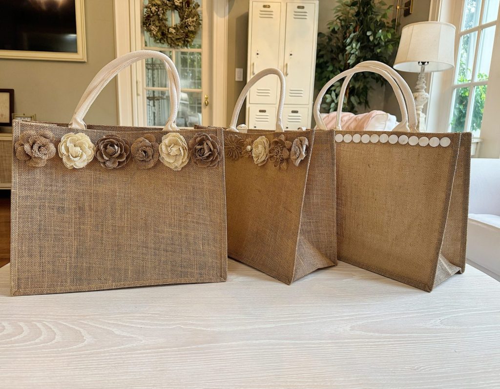 I have to say—I was truly blown away by how beautiful these bags turned out. I couldn’t believe the transformation when I stepped back and looked at the finished totes. They went from simple, understated burlap bags to chic and sophisticated accessories, perfect for any mom who appreciates style and practicality.