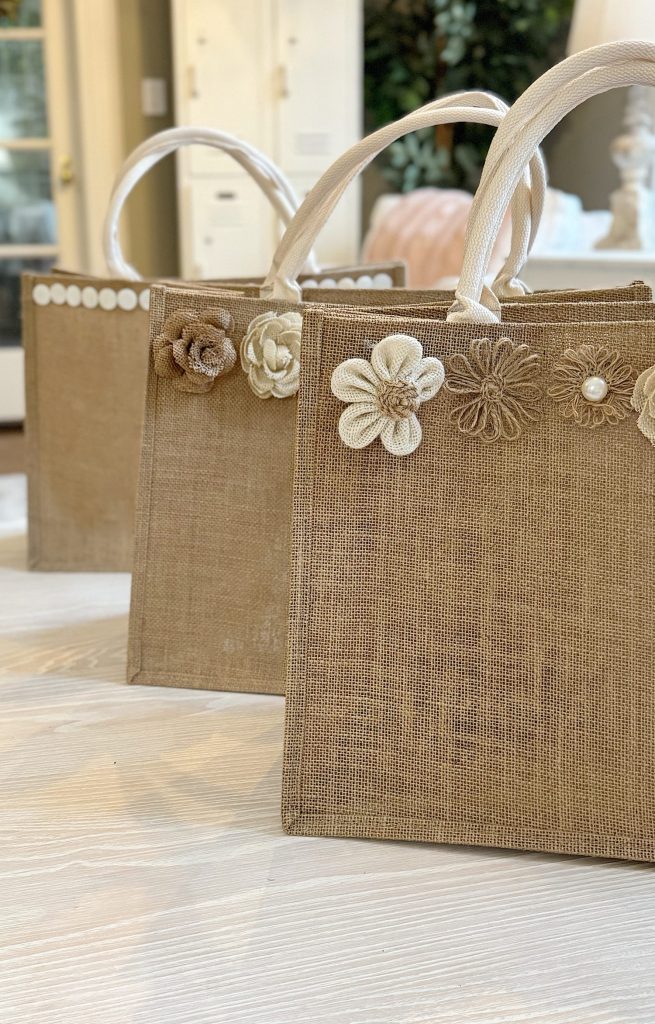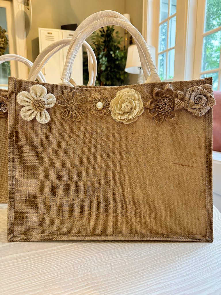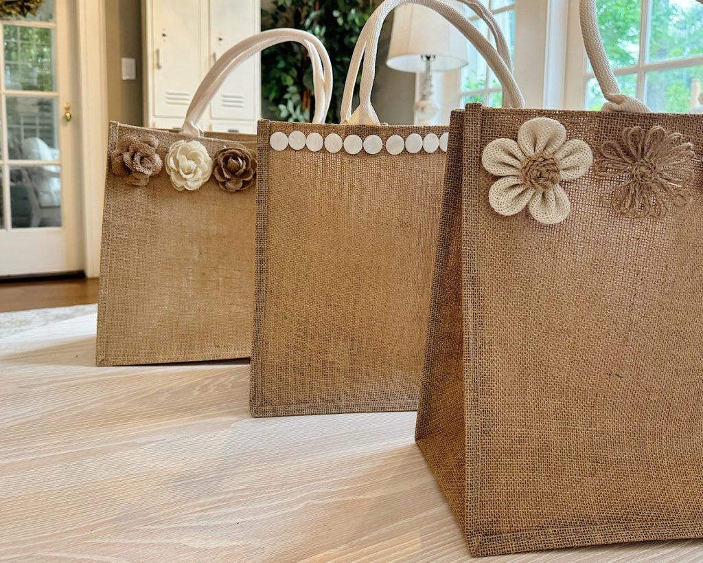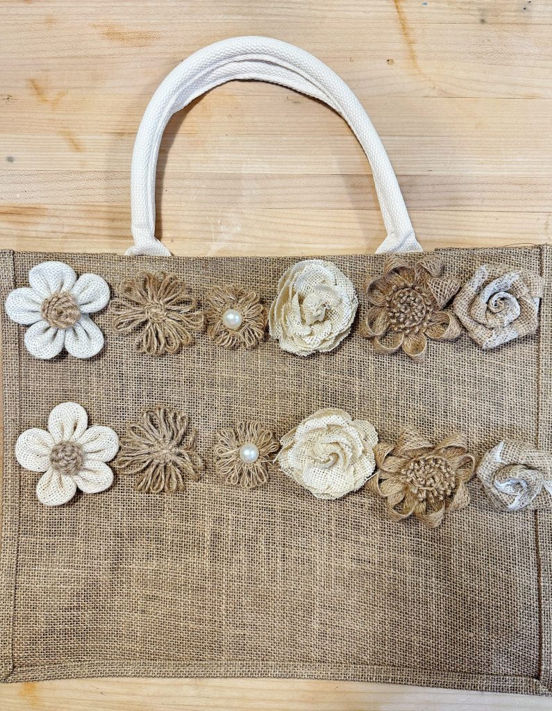 - Natural Burlap Flowers: These were my main decorative feature. The burlap flowers are rustic yet delicate, complementing the bags’ earthy style. I used two different sets.