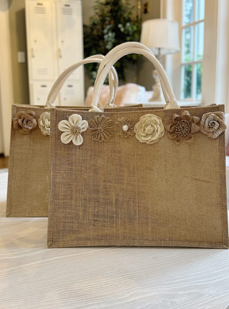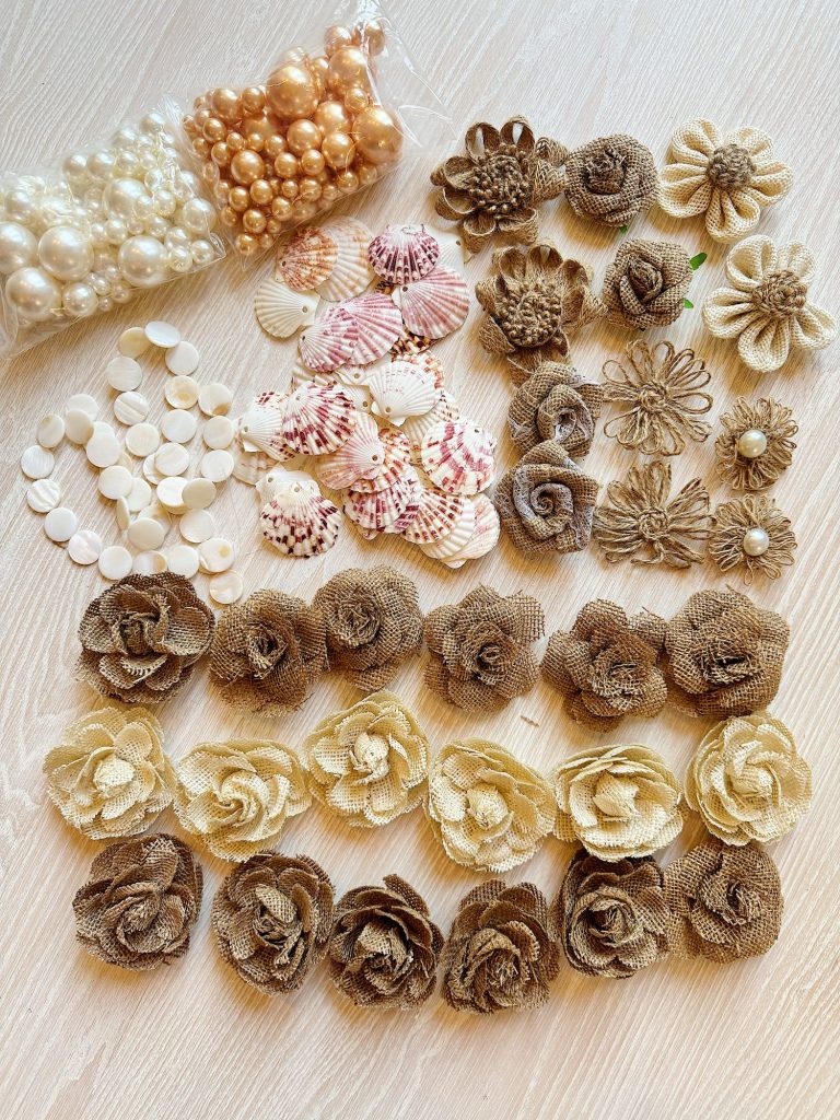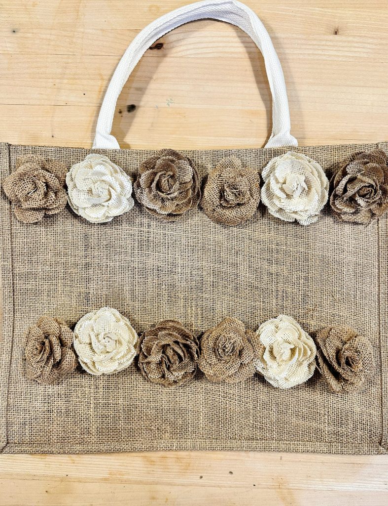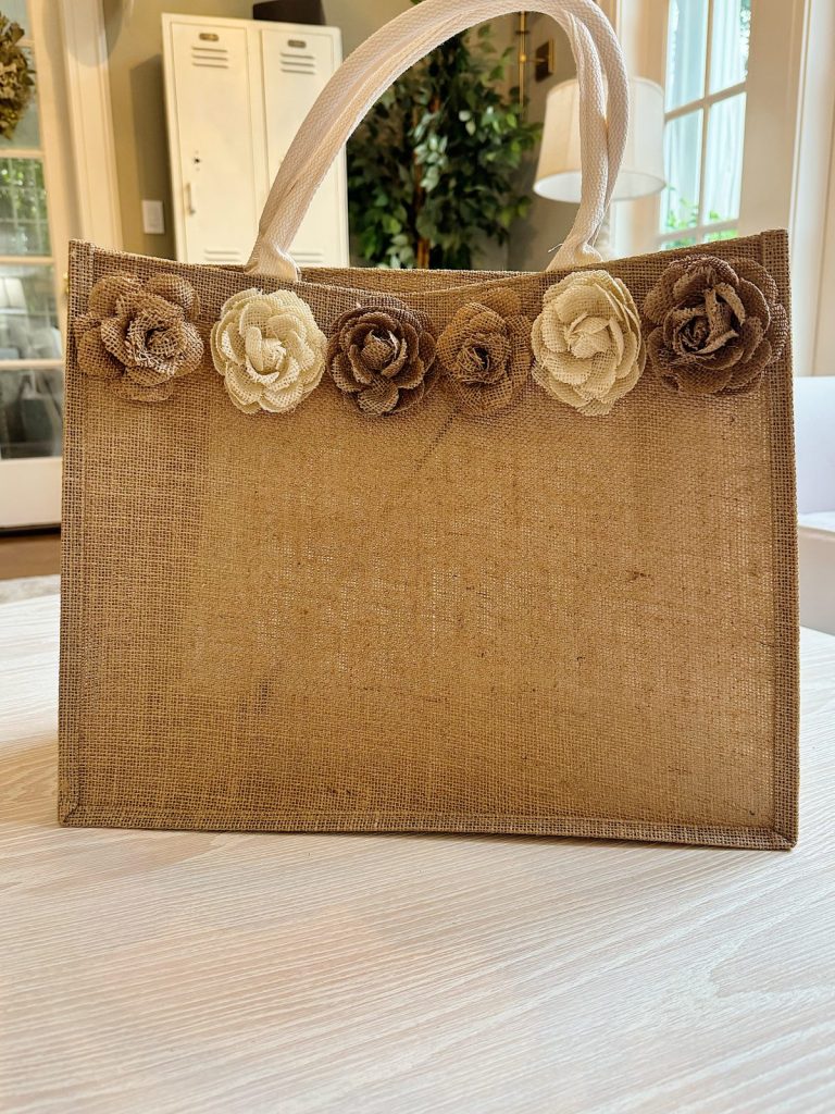 - Natural Burlap Flowers: These were my main decorative feature. The burlap flowers are rustic yet delicate, complementing the bags’ earthy style. I used two different sets.