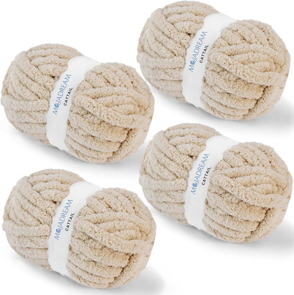 I shopped for this fall craft and found some of my favorite chunky chenille yarn, Bernat Alize Blanket-EZ Yarn (you can find it here). This yarn lets you knit a blanket without knitting needles, and it is incredible how quickly you can make it.