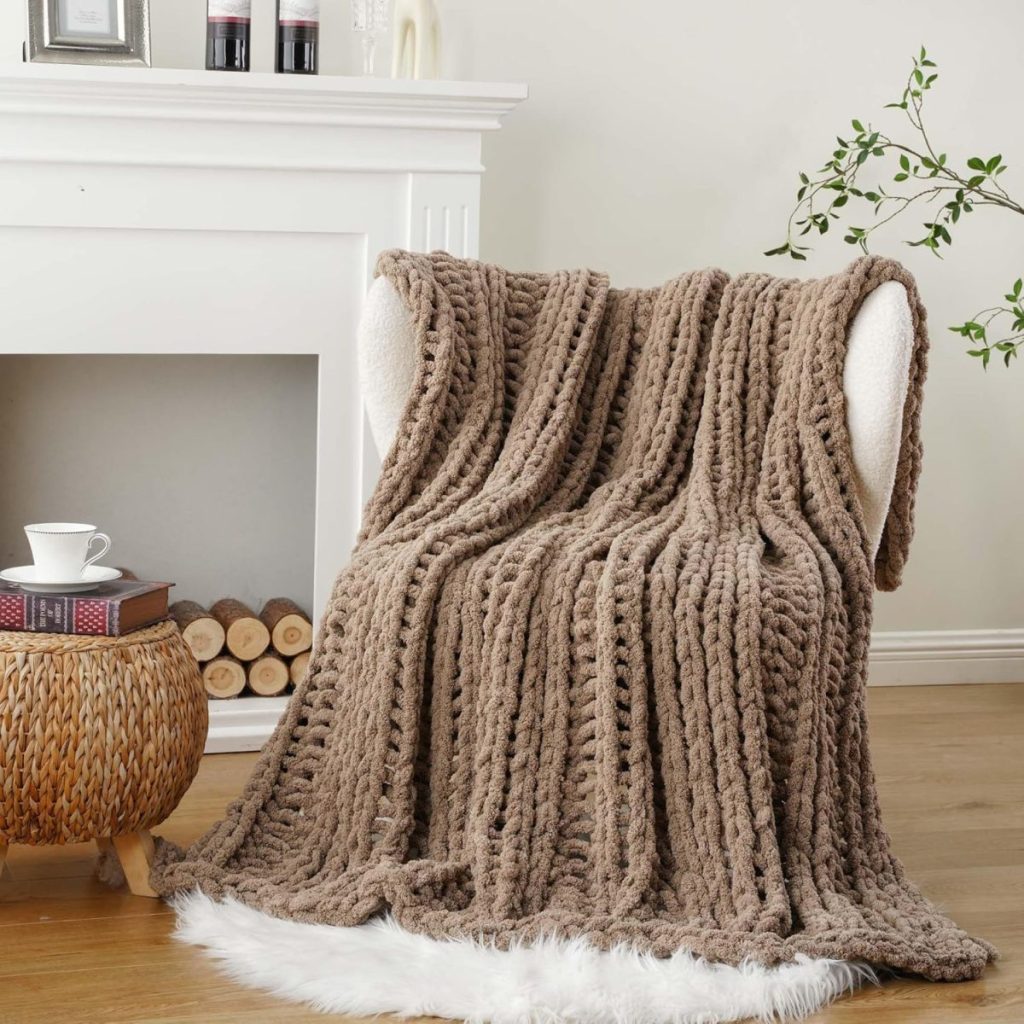 I am so excited to share my favorite DIY fall blanket project with you. I made this “finger-knitted” fall blanket, which is the best.
