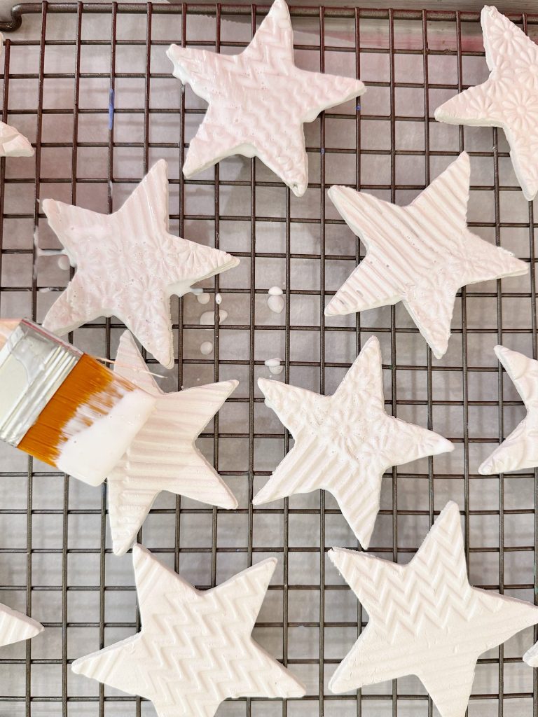 Most importantly, it prevents the paint from soaking into the clay, so when you paint the stars, they look more like ceramic pieces.