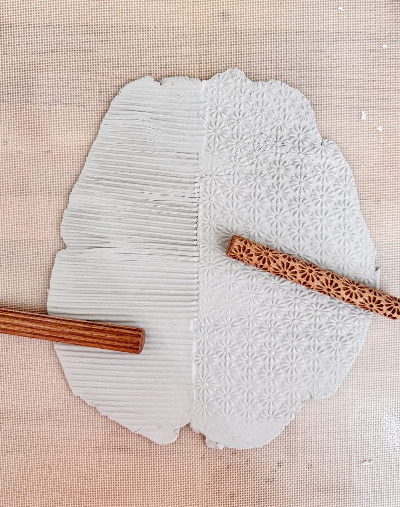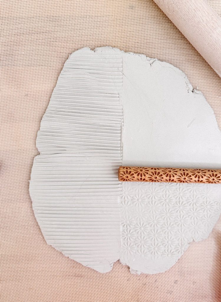 - Be careful not to press too hard—you want the pattern visible without flattening your slab.