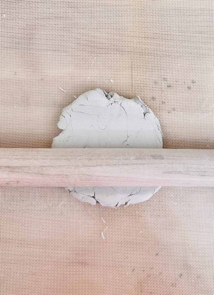 Start by pulling off a chunk of your air-dry clay and working it in your hands to warm it up. This makes it more pliable and easier to roll.