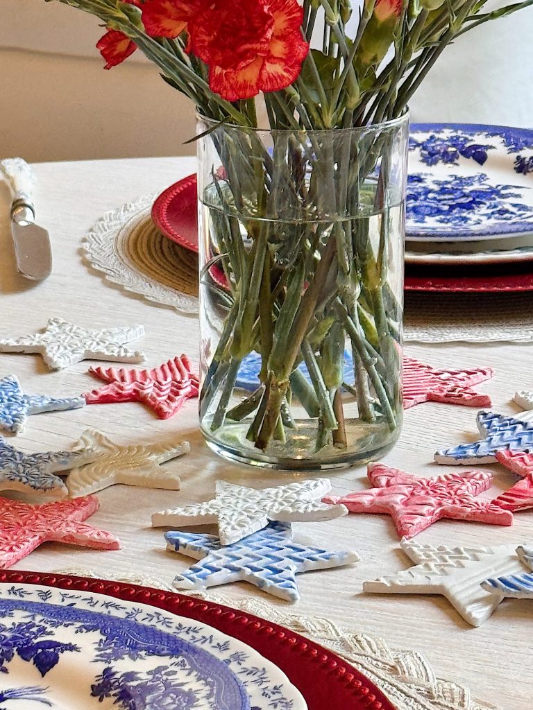 Every holiday table needs a little extra sparkle, and for the 4th of July, nothing says festive like a sprinkling of handmade air dry clay stars in red, white, and blue.