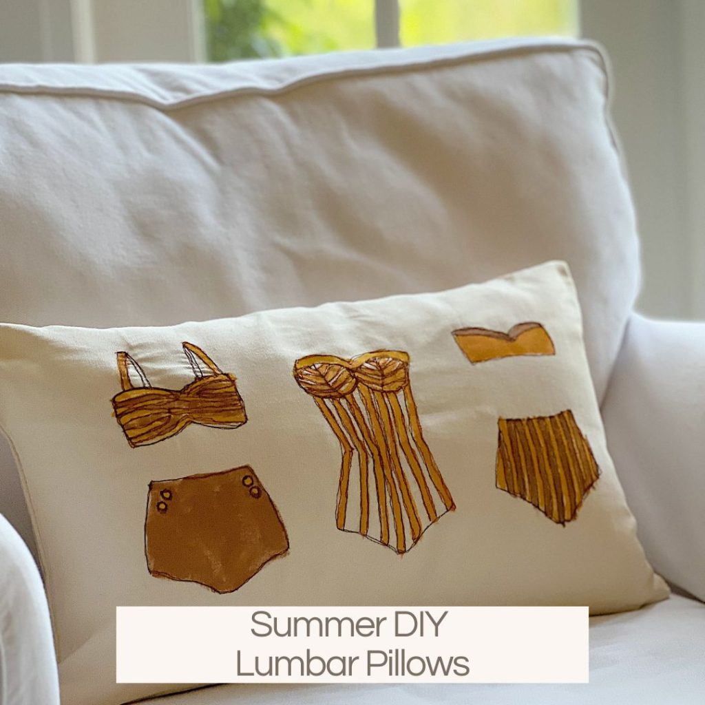 I’m sharing a cute summer DIY featuring lumbar pillows. The modern coastal vintage decor style of our beach house inspired this pillow.