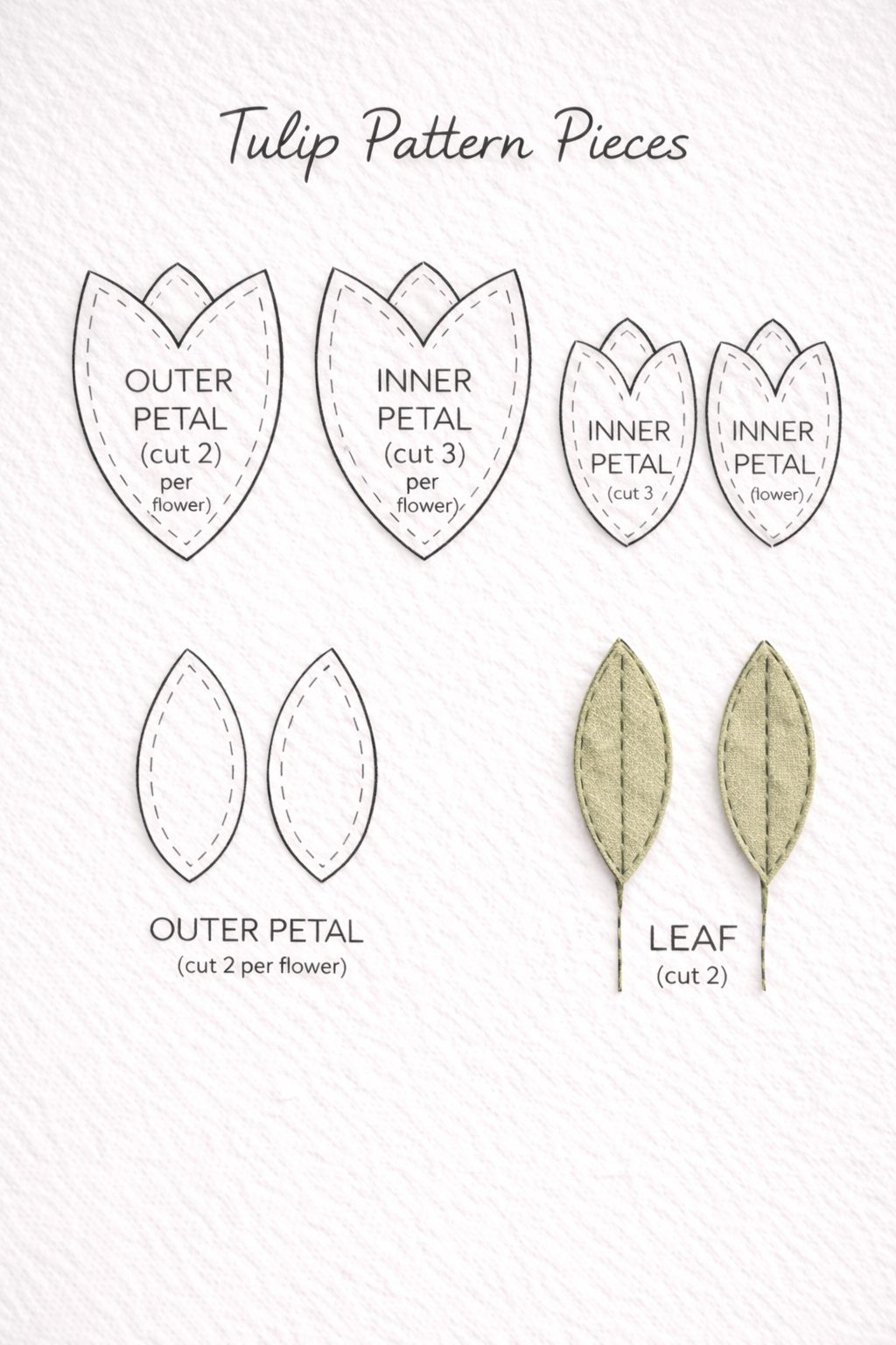 The tulips were created using simple petal shapes layered together for a dimensional effect.