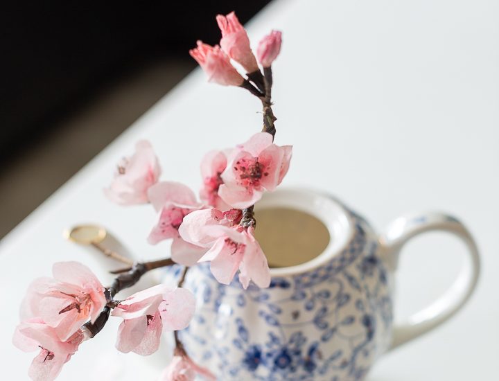 Craftberry Bush shared How to make paper cherry blossoms using a coffee filter.