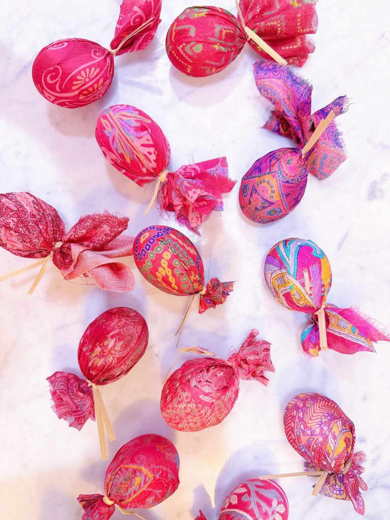 Below are some silk options that come in strips—these might be easier to use as an alternative to the squares! Wrapping the eggs with the fabric is the most challenging part and I think strips would be much easier!