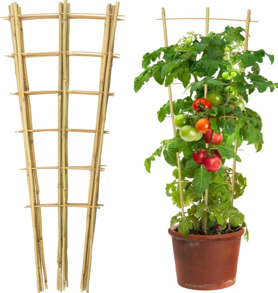 I love it when the tomato plants are hearty and grow tall. Our tomato cages are 58″ tall, but many tomato varieties grow taller than that! To make these wood tomato cages, click here.