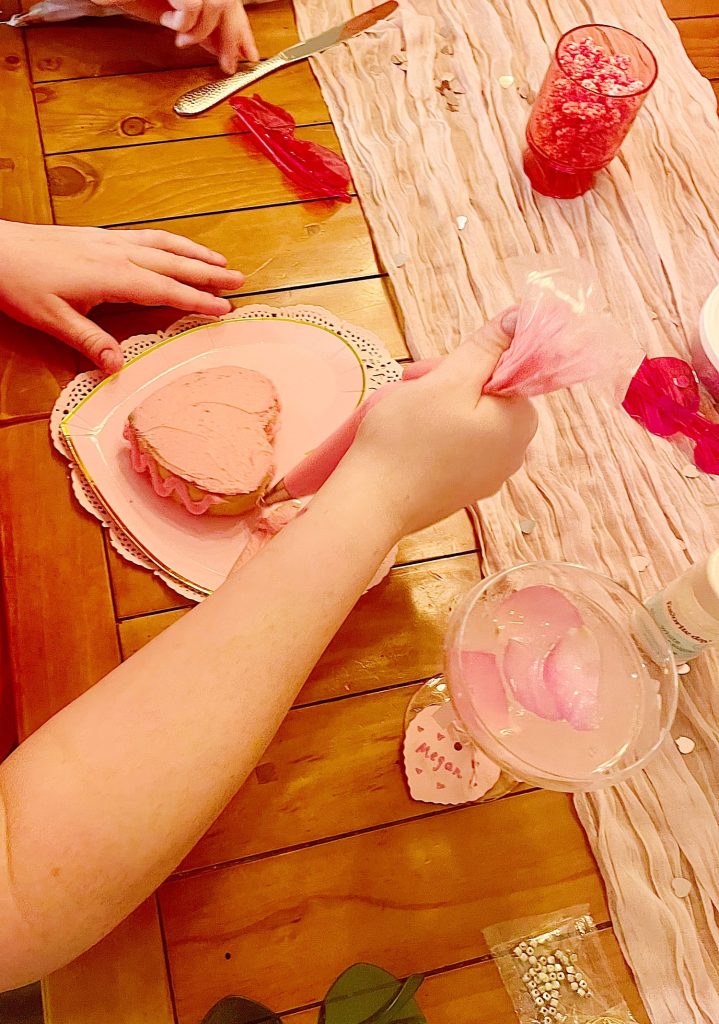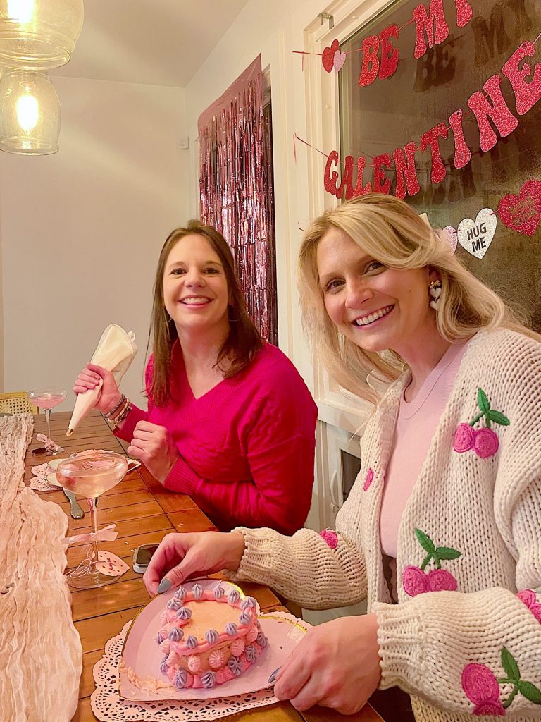 Everyone’s cakes turned out adorable, and no two were alike. Some went for elegant piping designs, while others loaded up on sprinkles and candy for a fun, whimsical look. It was such a low-stress, high-fun activity, and it made for the perfect Galentine’s night tradition.