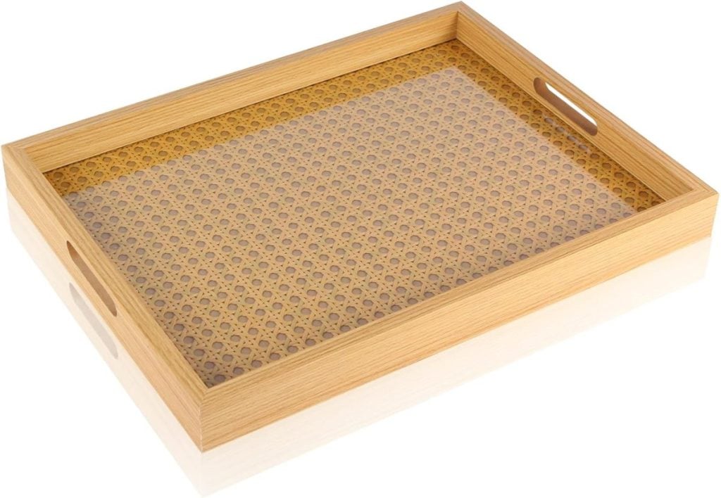 On the bottom shelf, display a collection of elegant glassware and serving trays, perfect for spring-inspired cocktails or mocktails during gatherings with friends and family.