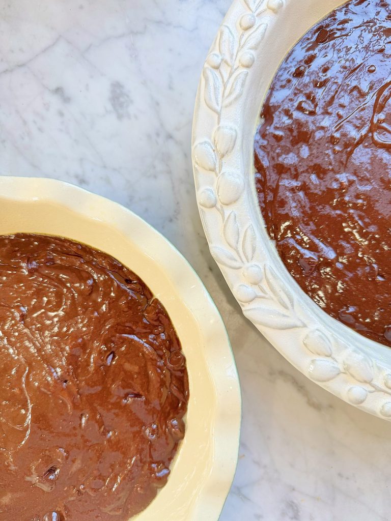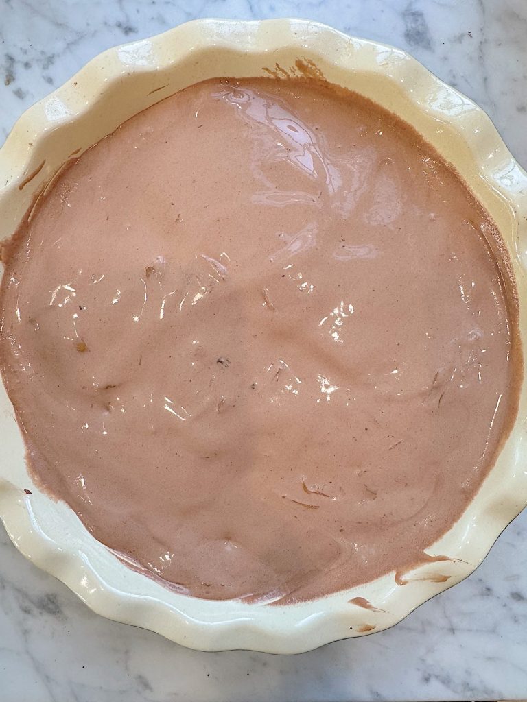 - Pour about 1" brownie dough into a greased 9-inch deep-dish pie pan or springform pan. Reserve the extra to make more brownies!