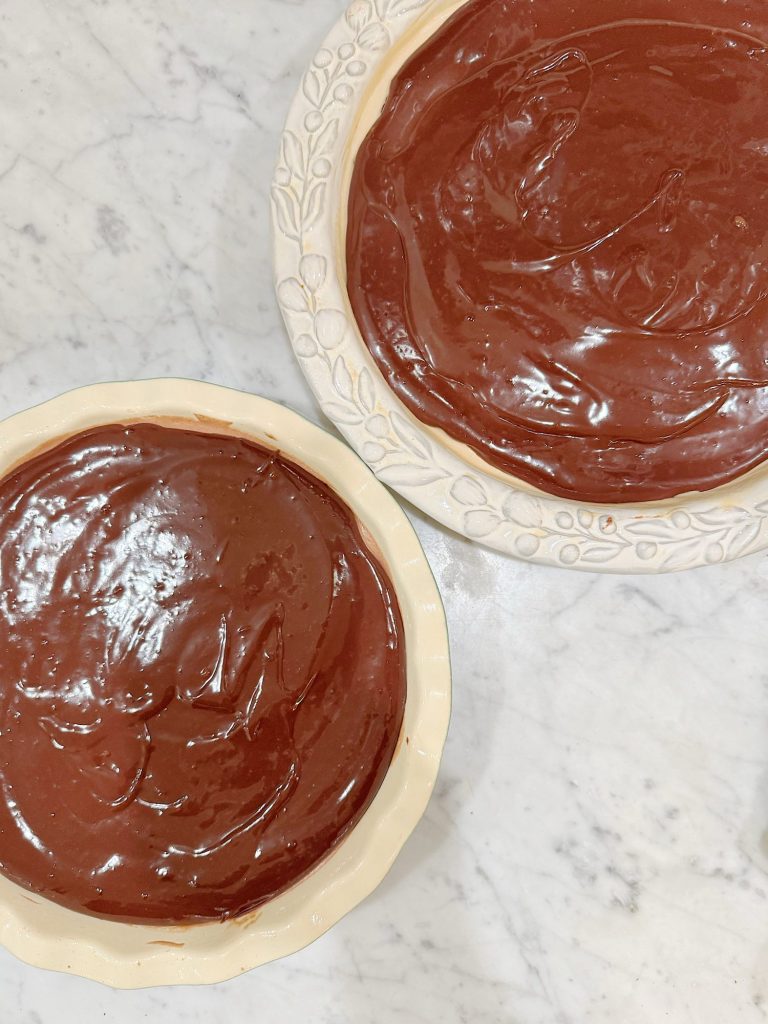 Prepare the brownie mix as directed on the box and stir in chocolate chips for extra texture and indulgence. Pour into a greased 9-inch deep-dish pie pan or springform pan and bake until set but still fudgy (don’t overbake – you want it gooey). Let cool completely. (Speed things up by chilling it in the fridge.)