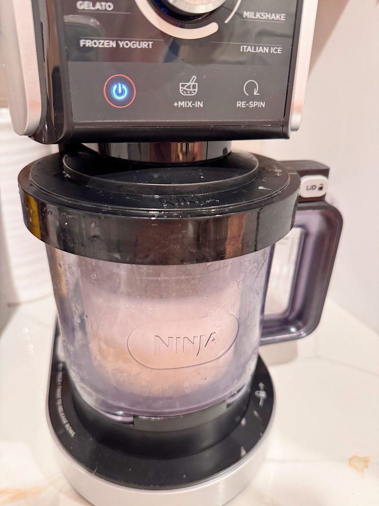 - Run the “Ice Cream” function. If it looks crumbly, use the “Re-Spin” feature until smooth and creamy.