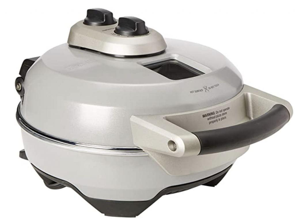 My pizza maker only takes about 10 minutes to cook a pizza. My only advice is not to make the pizza too thick (or pile too many ingredients on top), as the top items might burn if they touch the coils. This doesn’t happen too often, but it helps to roll the pizza dough so it’s not 1″ thick! Hah!