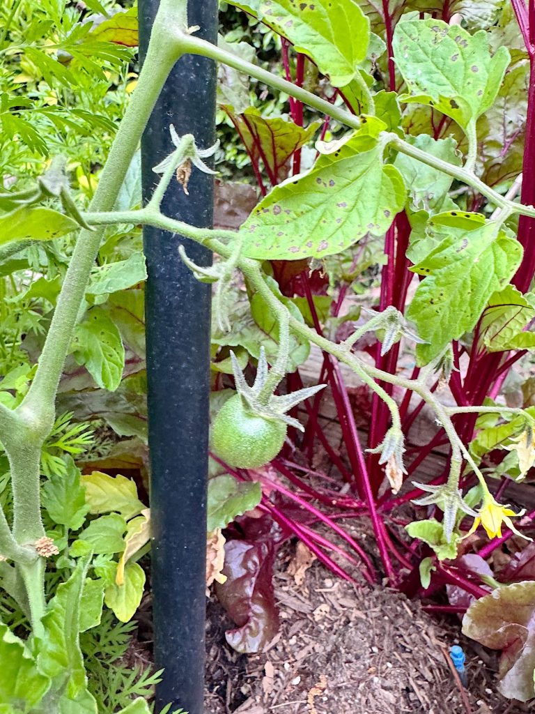 From fragile seedlings to vibrant, thriving plants, this experience has been gratifying and delicious. I even have small green tomatoes climbing my trellis’ and new tomato cages.