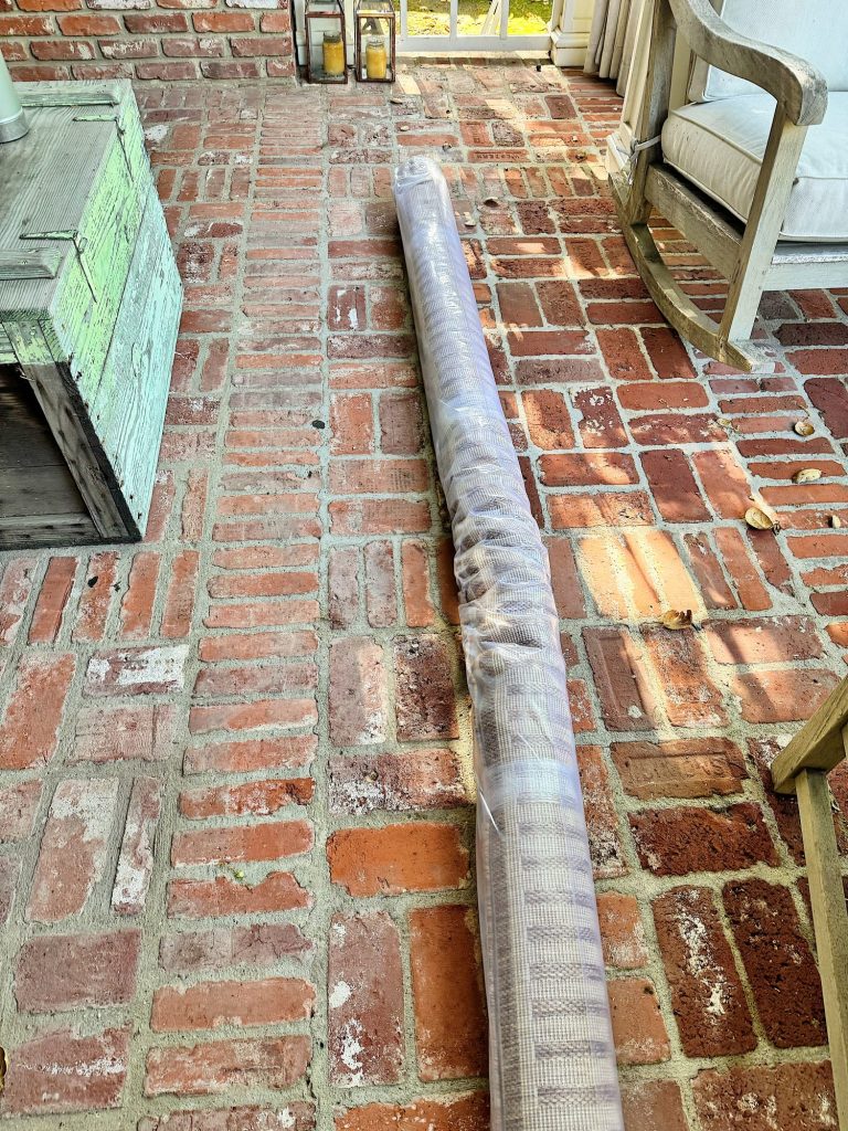 You might remember that I pressure-washed our back patio. I also had to get rid of our rug. Believe it or not, something has been shredding it for the last few months. I think it’s either a squirrel or a cat, but it was pretty destroyed.