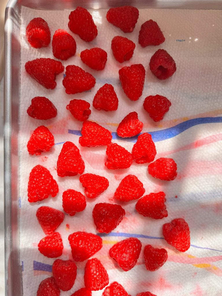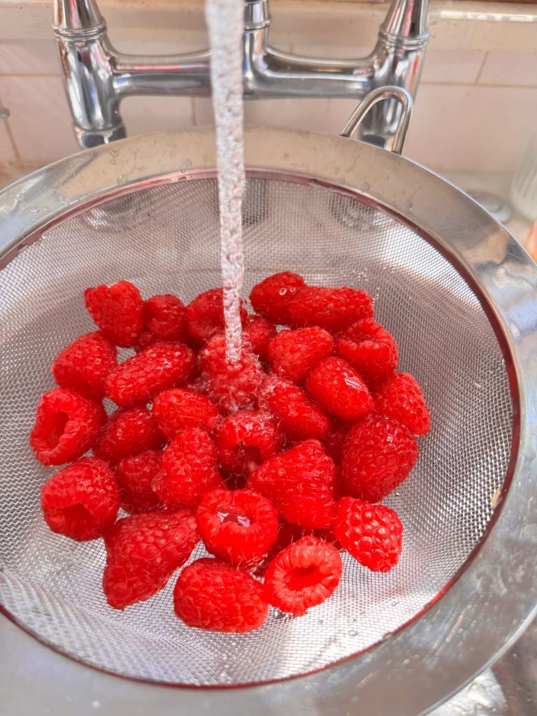 - For extra fragile fruits like raspberries, avoid over-handling and let them dry in a mesh strainer.