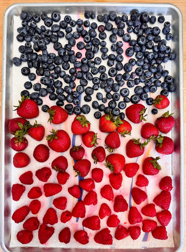 - Spread fruit in a single layer on a clean towel or baking sheet lined with paper towels.