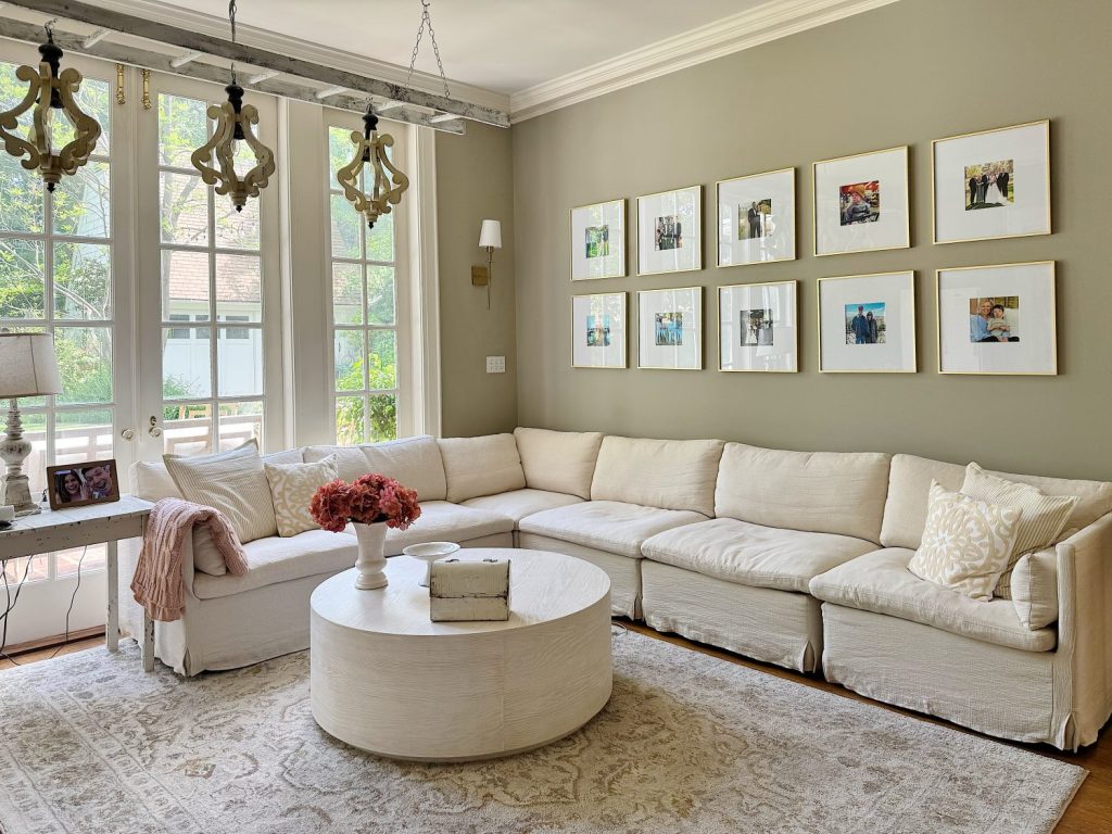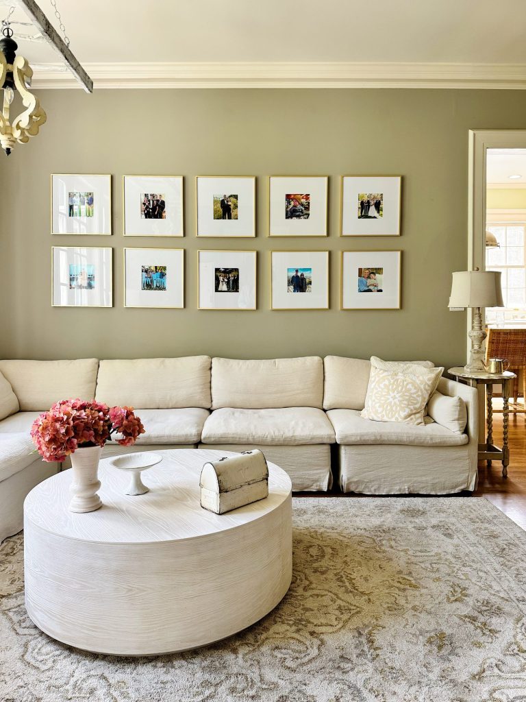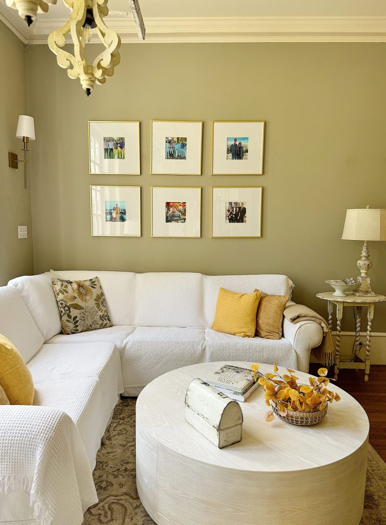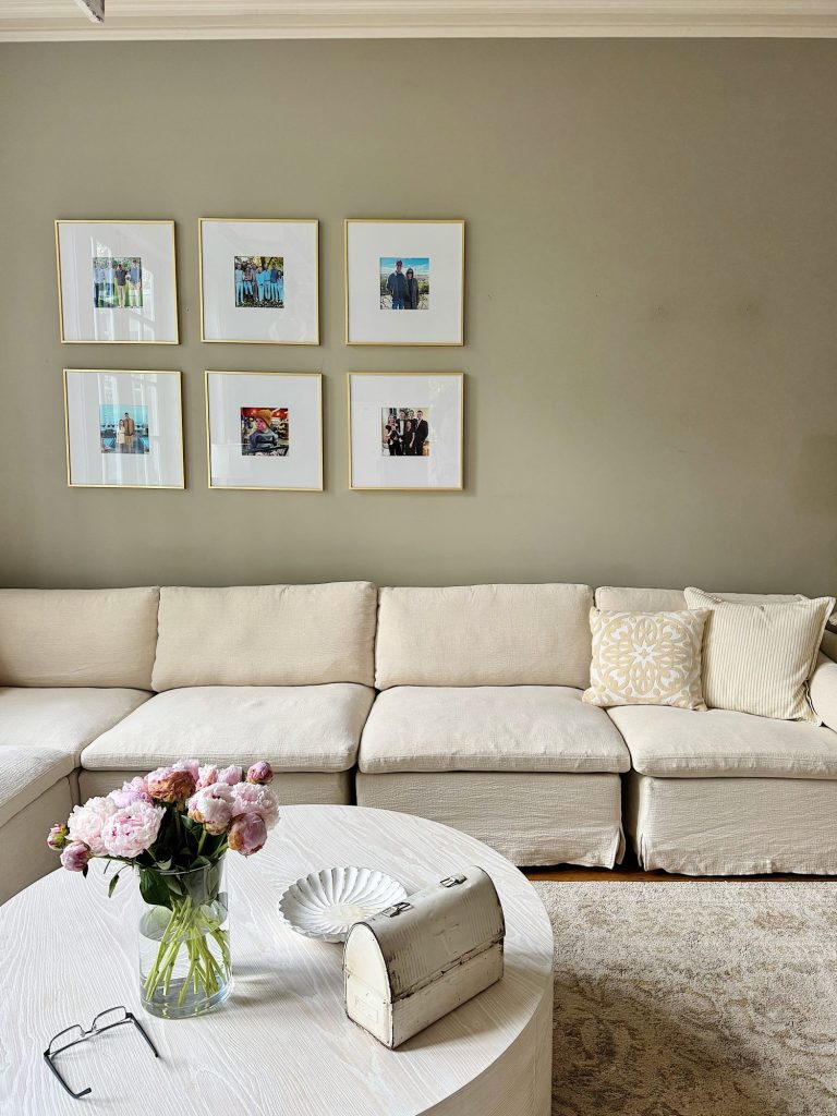 The new sectional is much longer than our 25-year-old Pottery Barn sectional, and my frames on the wall didn’t fit!