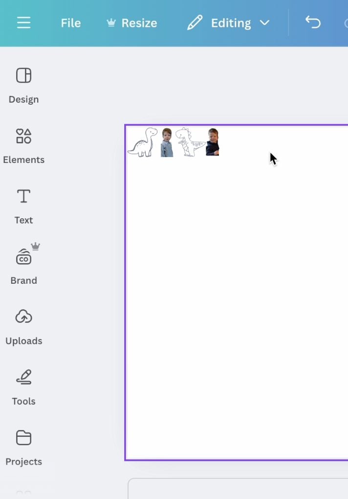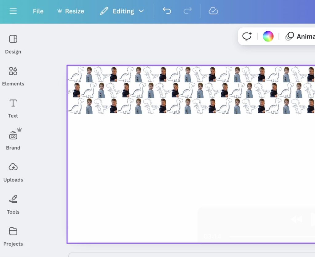 In the second Canva window, I created a small design block that I’d repeat across the banner. I kept it simple and sweet with two favorite photos of Graham and two sketched dinosaurs that I found in Canva’s free image library (search “dinosaur sketch” or “cartoon dinosaur” to find tons of cute options!).