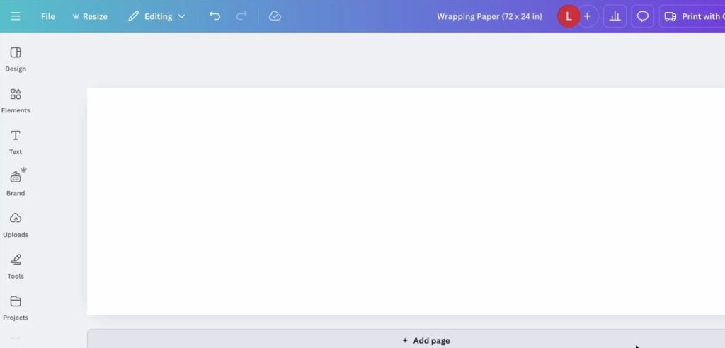 First, I opened Canva and created a custom-sized design. I used Canva’s Banner template and set the dimensions to 72 x 24 inches. This large size would give me plenty of space to create a repeating pattern that could be printed as a poster-sized banner—perfect for wrapping multiple gifts of all sizes.