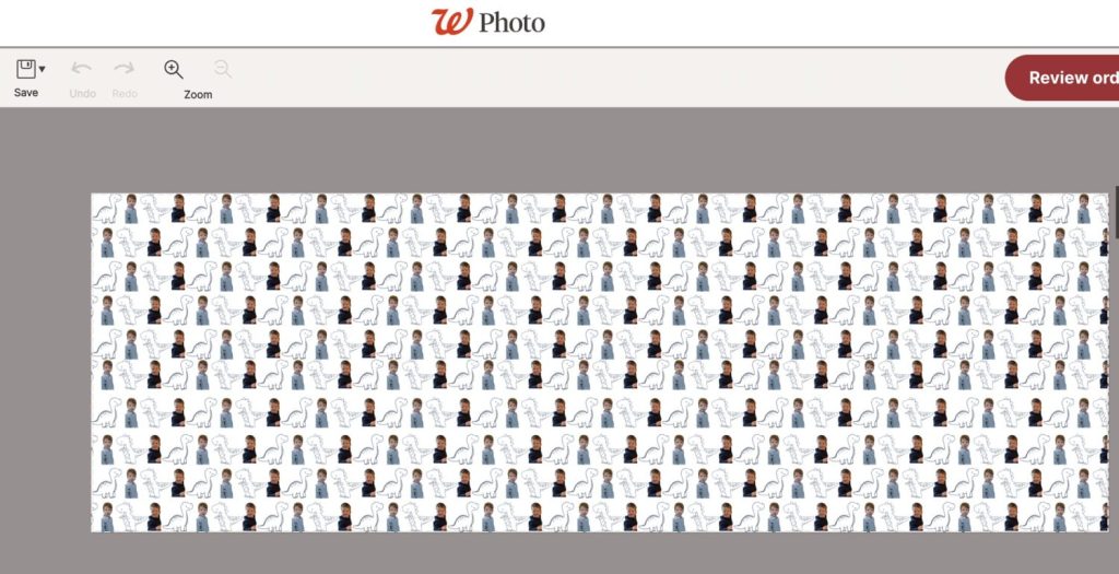 Before we start, I need to mention that you can design your wrapping paper directly on the Walgreen’s website. Just select the option to make a custom banner at Walgreens Photo and choose one of the many layouts they offer. You can upload your photos directly on their site. It’s a lot easier than using Canva, but the images are larger than I wanted on my wrapping paper.
