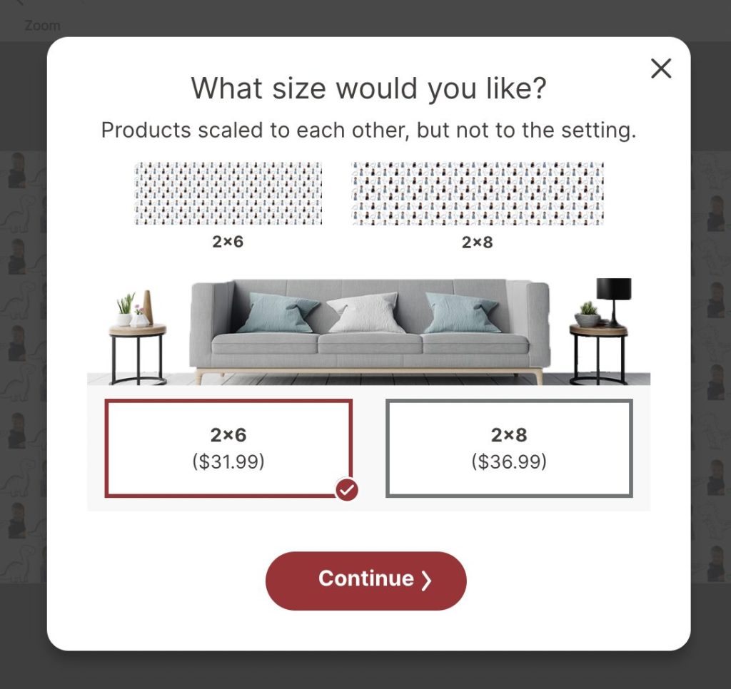 - Choose your print size (I selected 72 x 24 inches to match the Canva file).