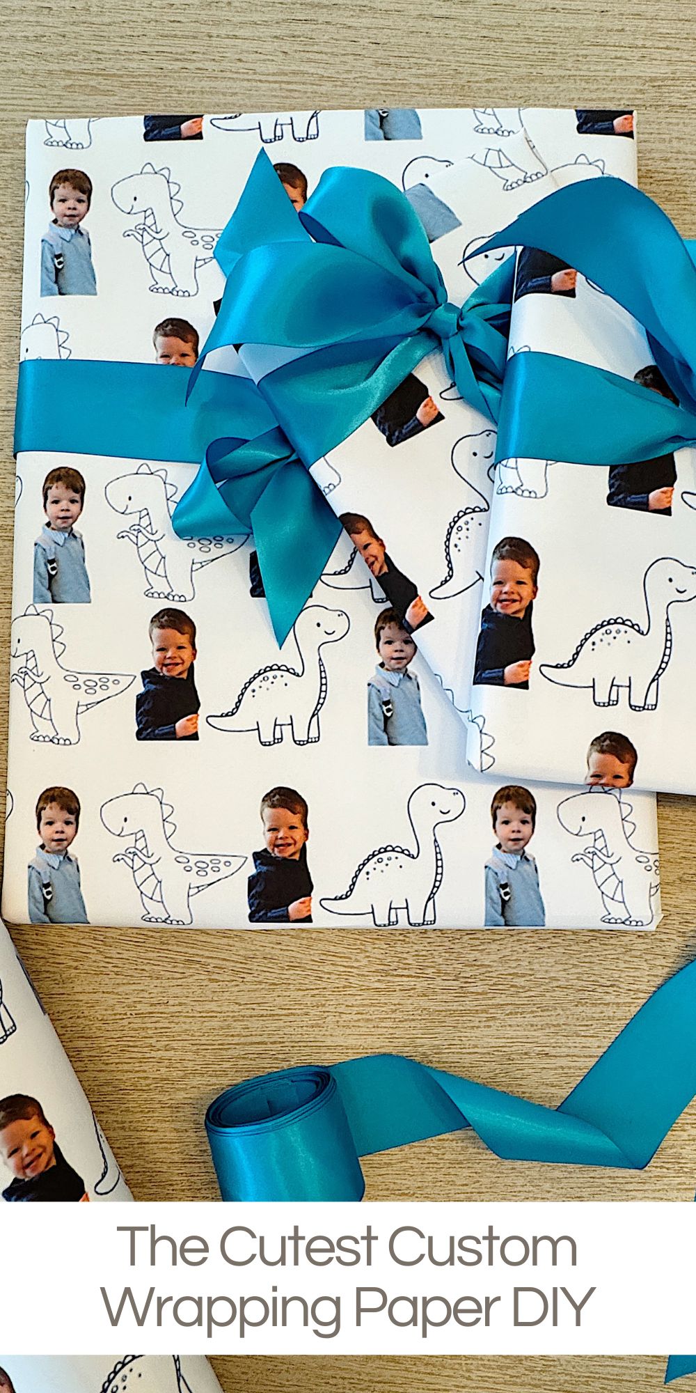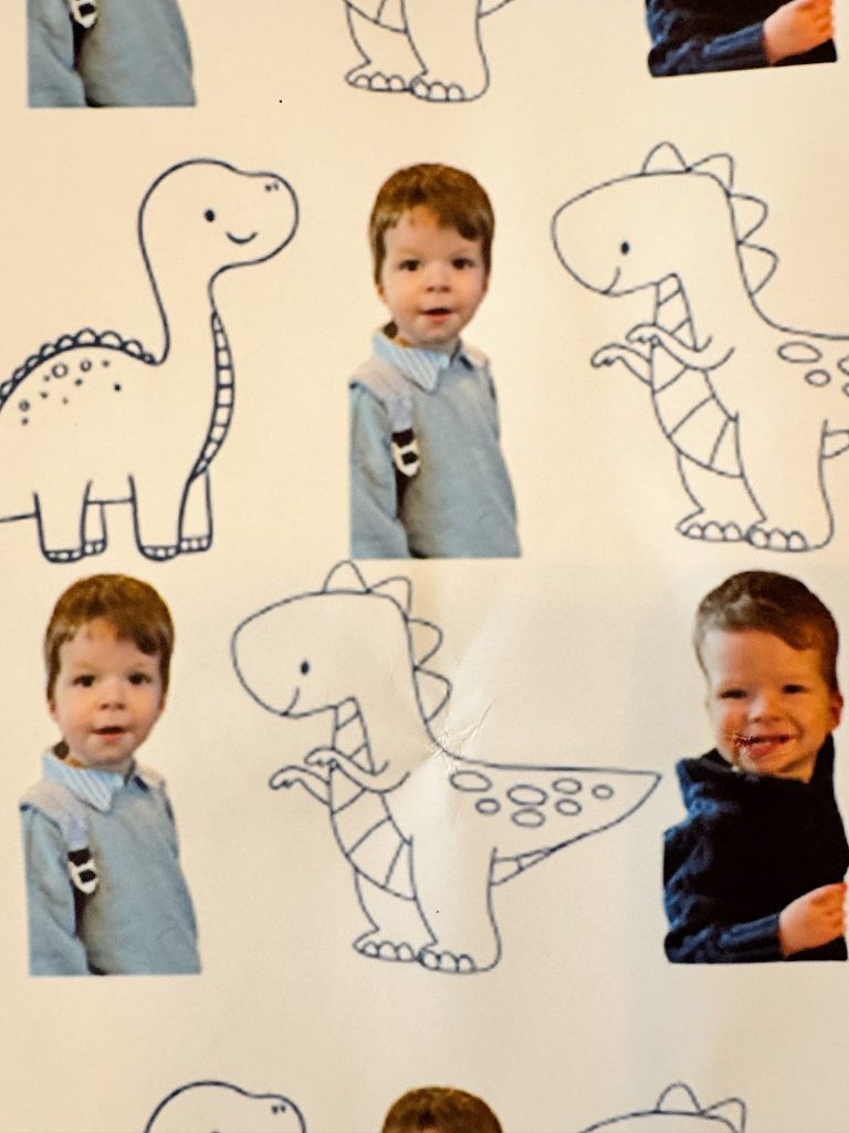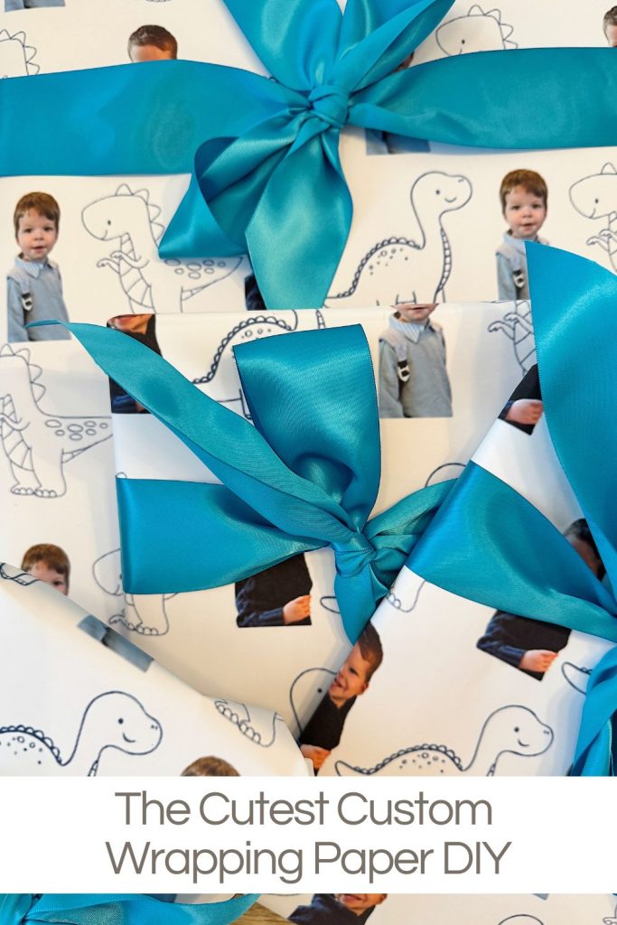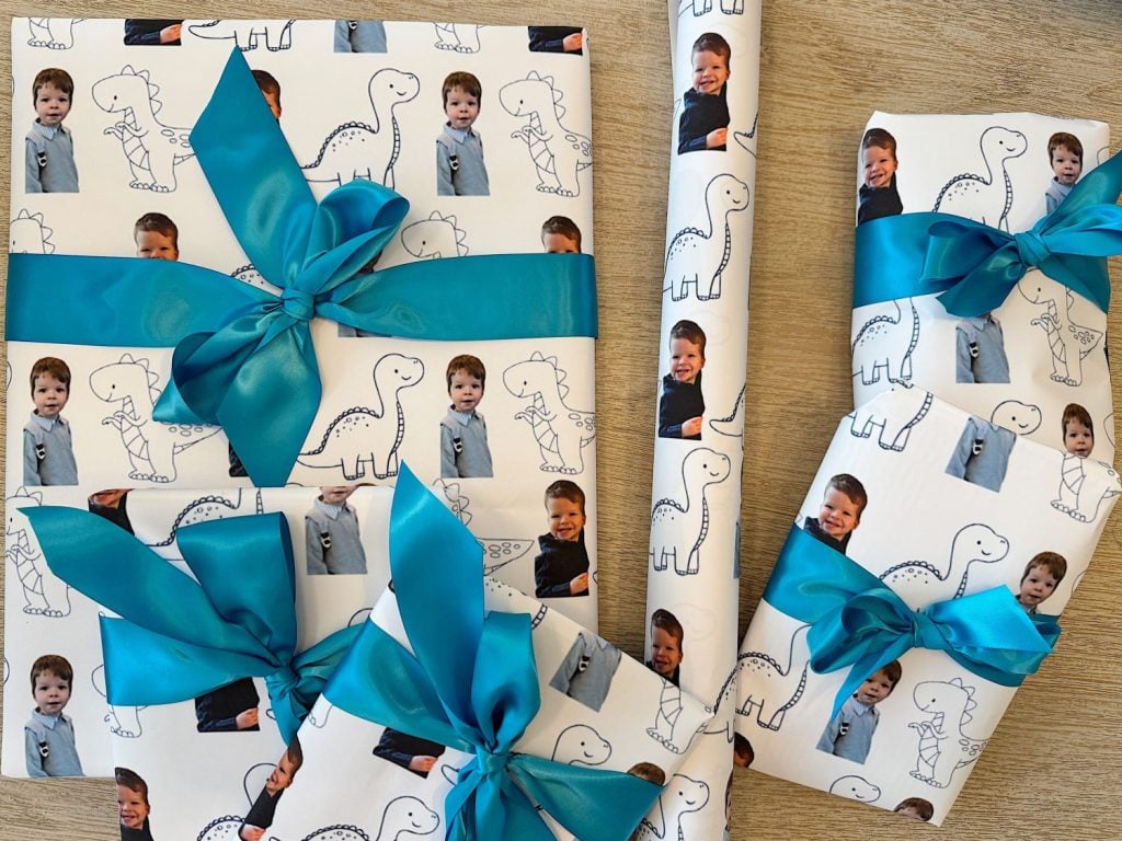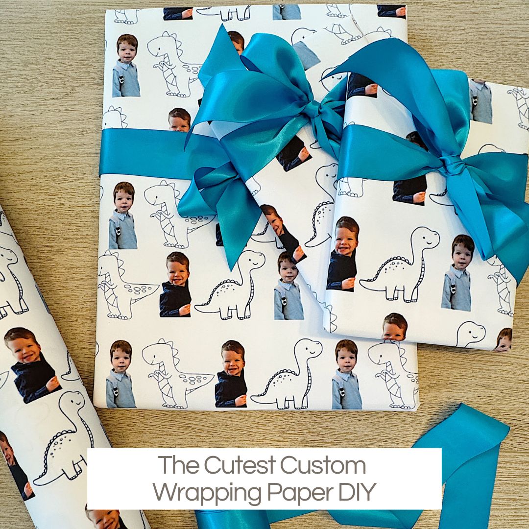 If you’ve been around here for a while, you know I love a creative project—the custom wrapping paper featuring my grandson is so cute!